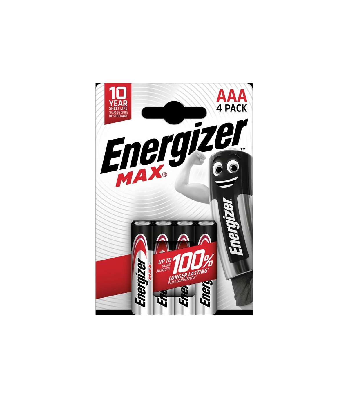 Alkalické baterie Energizer Max, Napětí článku 1,5V, Označení LR03, Typ baterie AAA, Skladovatelnost 10 let, Balení obsahuje 4 ks, Cena za balení