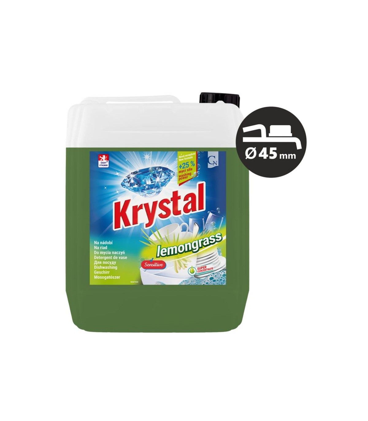 Prostředek na nádobí Krystal - 5 l, Vysoká pěnivost a mycí účinek, obsahuje aktivní látku k ochraně pokožky - aktivní ocet, Cena za ks