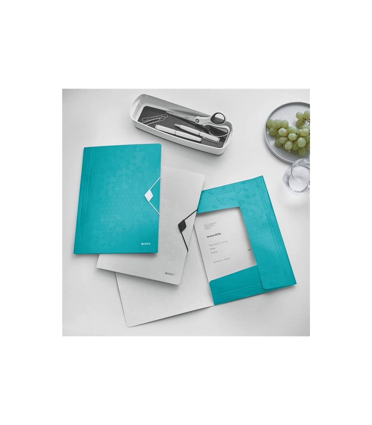 - Desky s chlopněmi a gumičkou Leitz WOW - A4, plastové, ledově modré, 1 ks