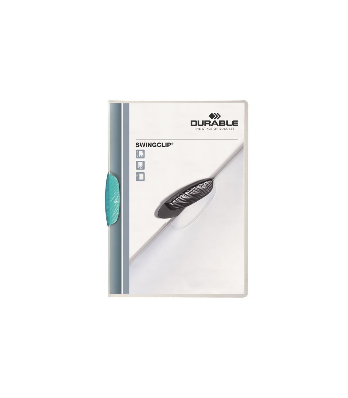 Zakládací desky s klipem Durable Swingclip - A4, kapacita 30 listů, transparentní, světle modrý klip
