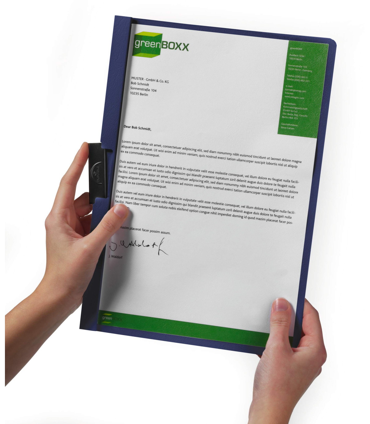 - Systém DURACLIP®: Vytáhněte klip do strany, vložte dokumenty a zatlačte klip zpět - jednoduché!