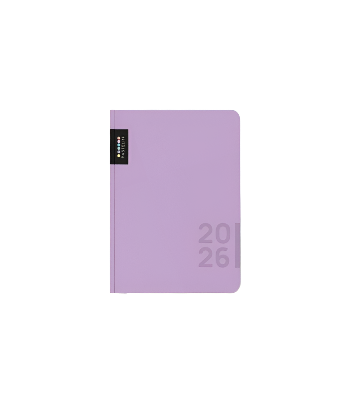 Diář týdenní Pastelini A5 - fialová 2026, Formát A5, Rozměr 155 x 207 x 12 mm, Kalendárium obsahuje: cz/sk jména, cz/sk státní svátky, dny a měsíce v 5 jazycích (CZ, SK, DE, ENG, RUS), Cena za ks