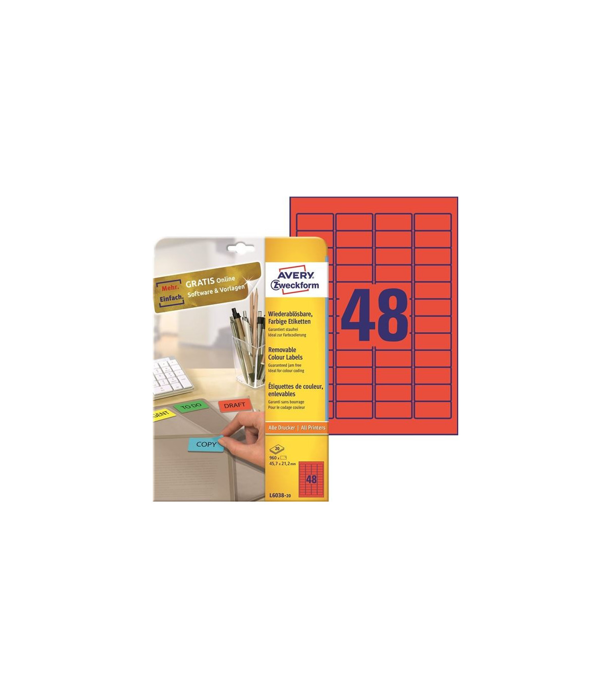 - Rozměr etiket: 45,7 x 21,2 mm; 48 etiket na archu; 20 archů