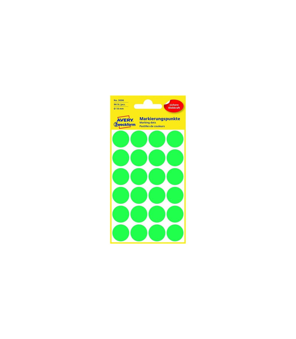 Kulaté etikety Avery, zelené, průměr 18 mm, 96 ks