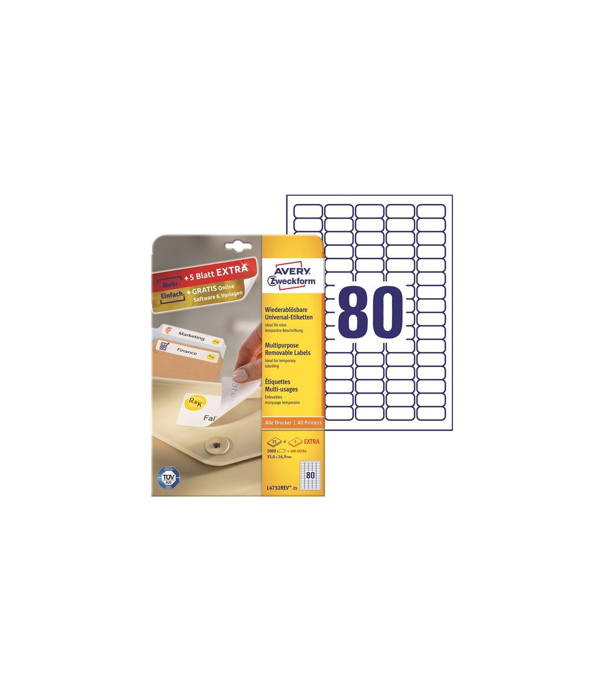 - Aktuální balení obsahuje 2 000 + 400 ks etiket navíc