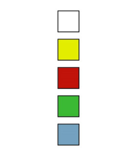 - V každém balení je 5 barev po 20 arších (bílá, žlutá, červená, zelená, modrá)