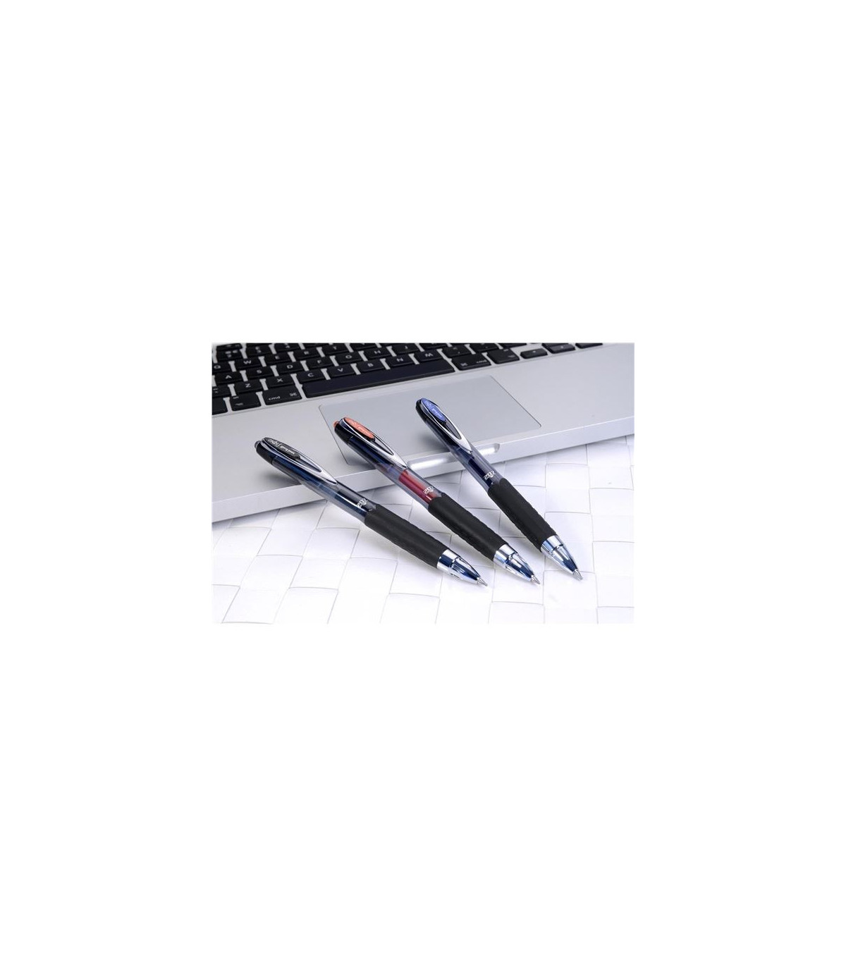 - Gumový úchop, kovový klip, hrot z nerezu s karbidovou kuličkou pro zvláště hladké psaní