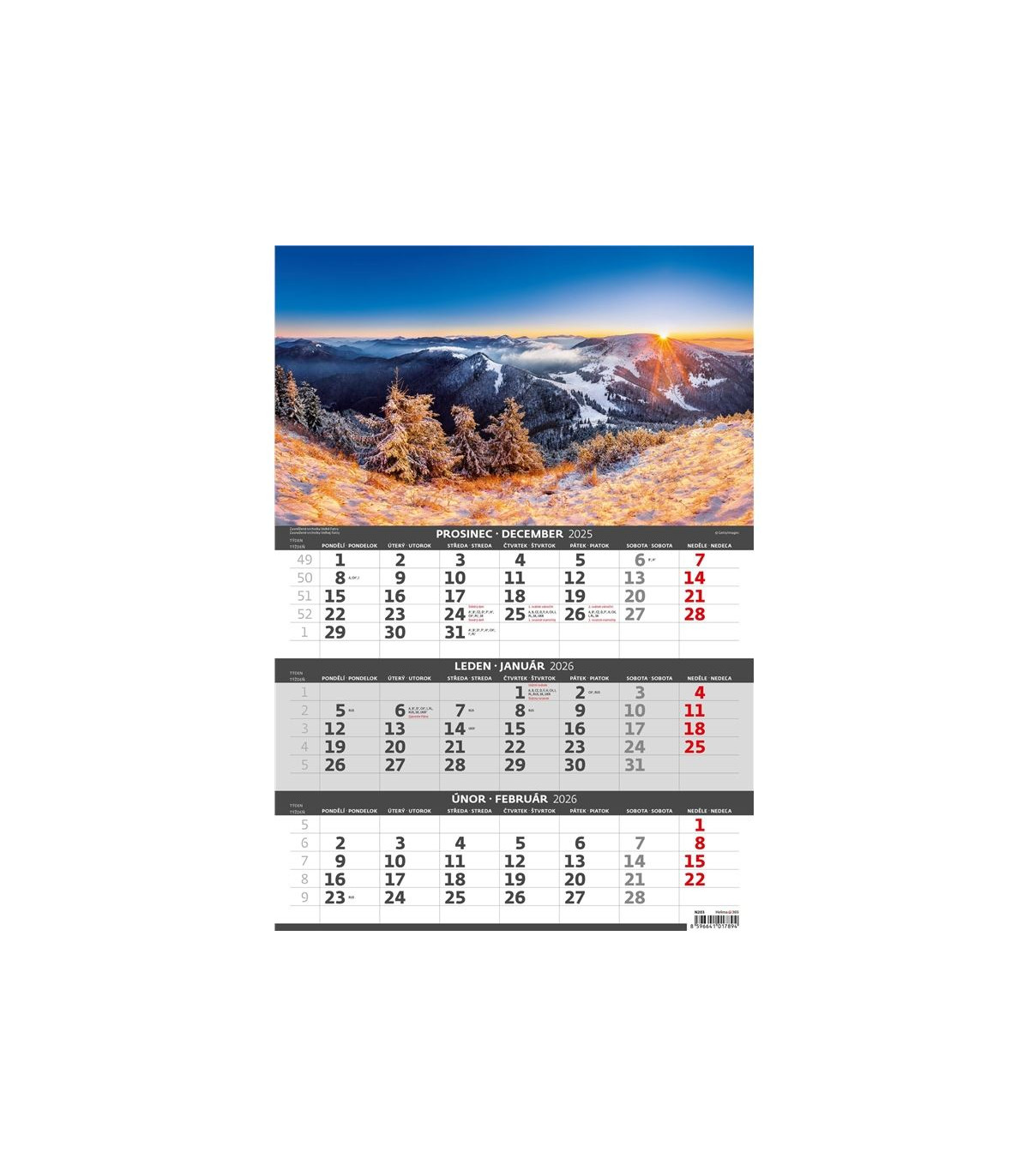 Tříměsíční nástěnný kalendář 2026 Hory, Barva mix, Provedení nástěnné, závěsné, Počet listů 12, Rozměr: 31 x 45 cm, Cena za ks