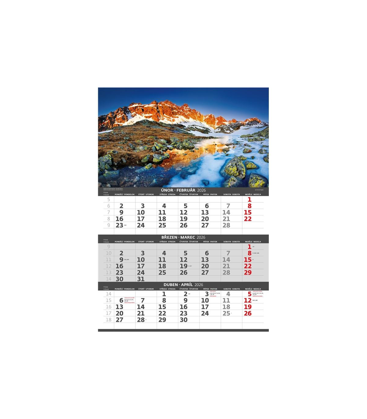 - Tříměsíční nástěnný kalendář 2026 Hory