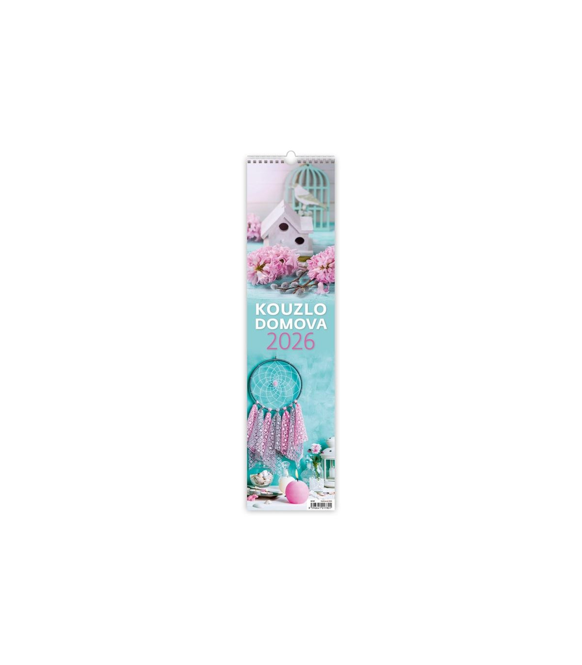 Měsíční nástěnný kalendář 2026 Kouzlo domova, Rozměr 12 x 48 cm, Počet listů 13, České měsíční jmenné kalendárium, Cena za ks