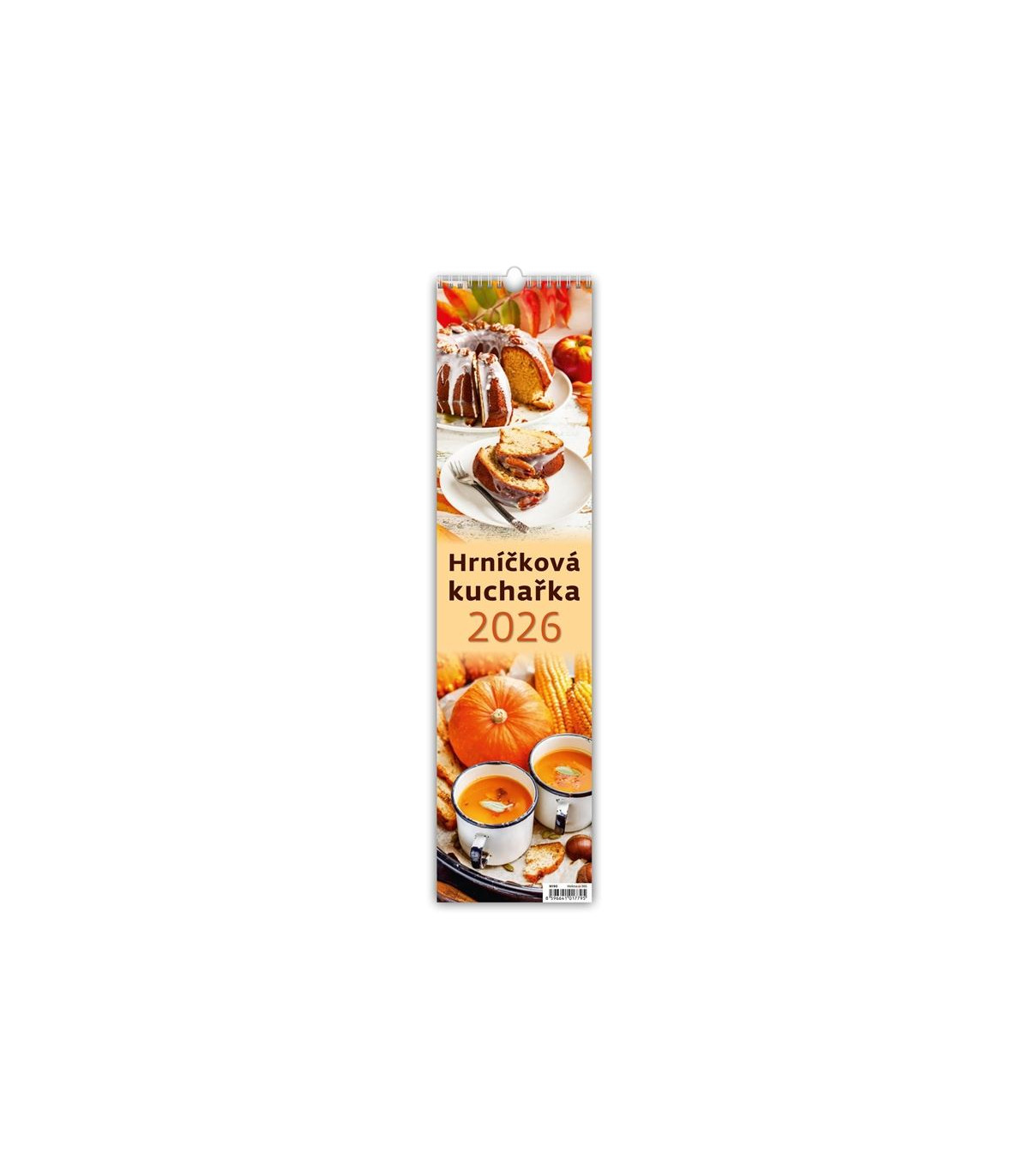 Nástěnný kalendář 2026 Hrníčková kuchařka, Rozměr 12 x 48 cm, Počet listů 13, České měsíční jmenné kalendárium, Cena za ks