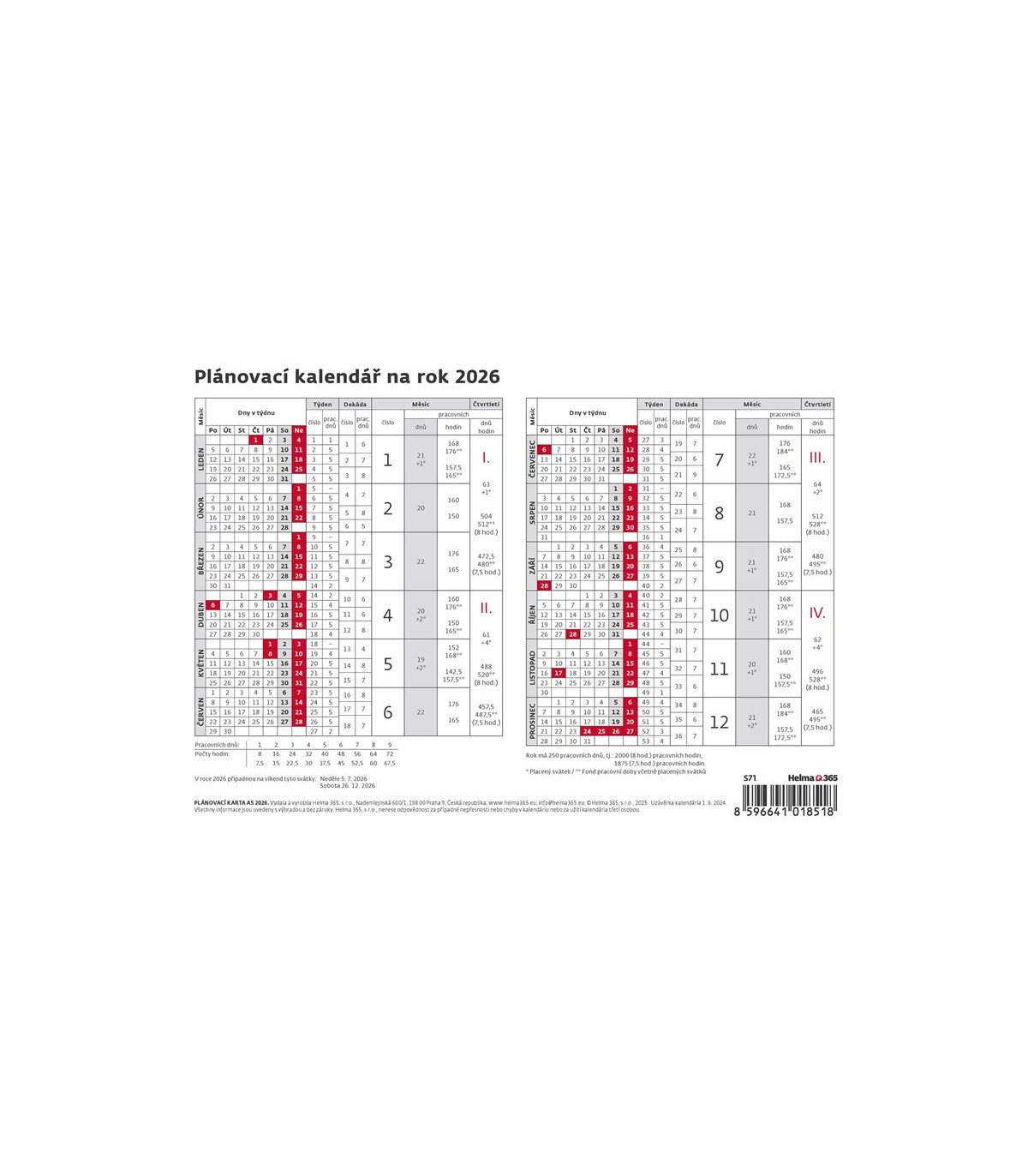 Plánovací kalendář na rok 2026, Rozměr: 21,1 x 14,8 cm, 1 list, Motiv pracovní, Cena za ks