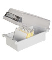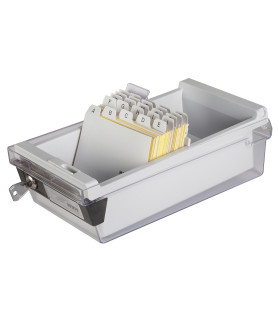 - Kartotéka vyrobená z pevného plastu s gumovými nožičkami a odnímatelným víkem