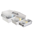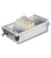 Kartotéka formát A5 na šířku vyrobená z pevného plastu s gumovými nožičkami a odnímatelným víkem, Rozměr 235 x 190 x 360 mm, Barva světle šeda, Cena za ks