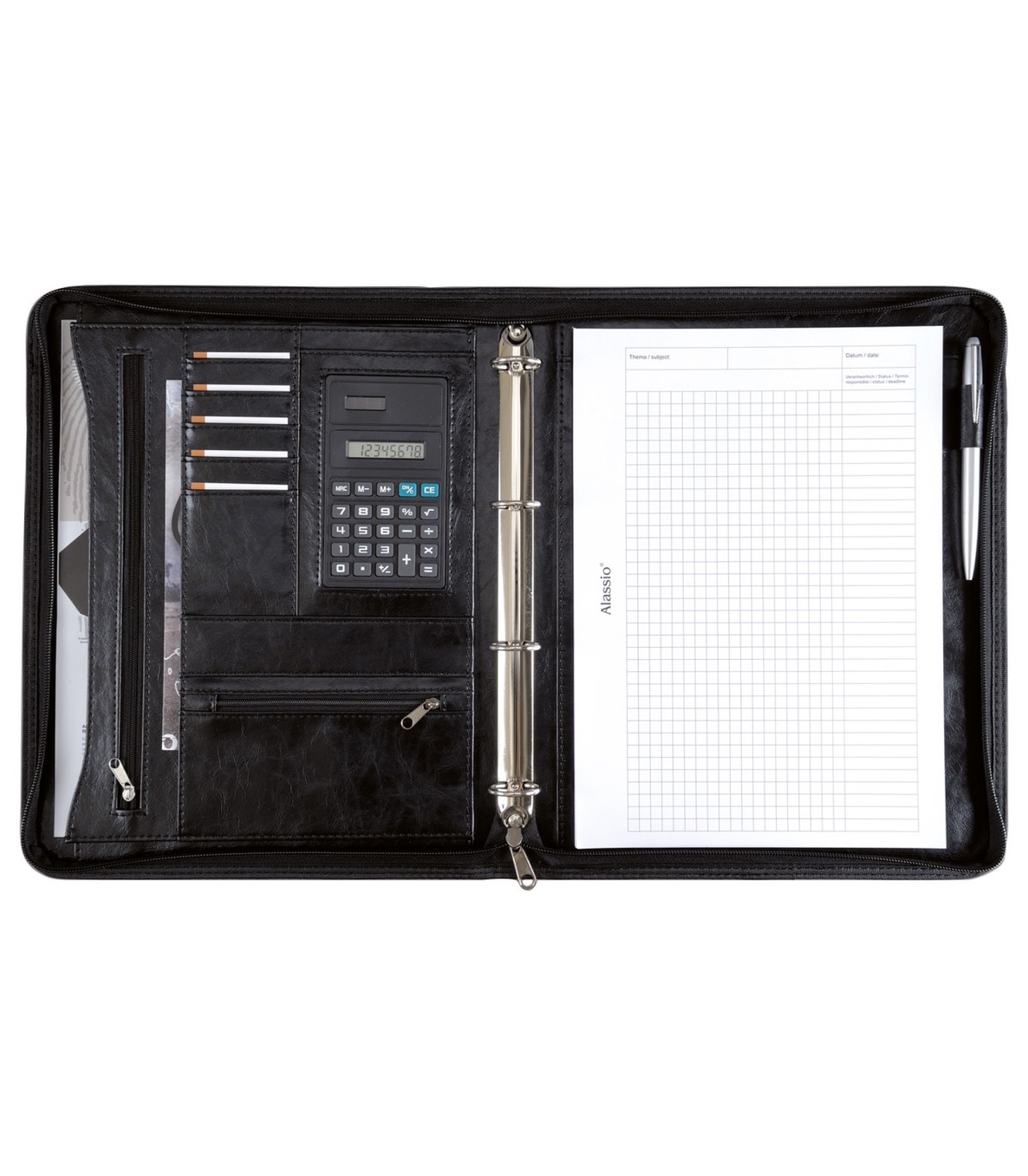 - Konferenční desky MASSA A4 se zipem, kalkulačka, černá (30065)