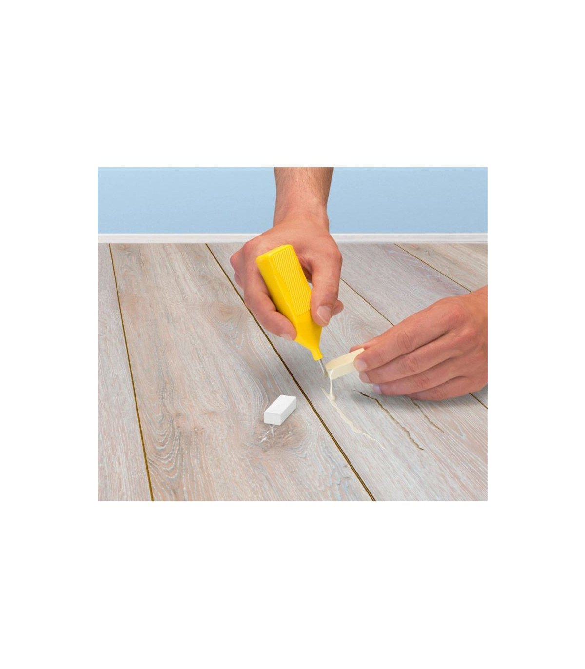 - Opravný vosk na poničenou podlahu dokáže vyplnit a zakrýt škrábance na parketách, laminátu a podlahových deskách