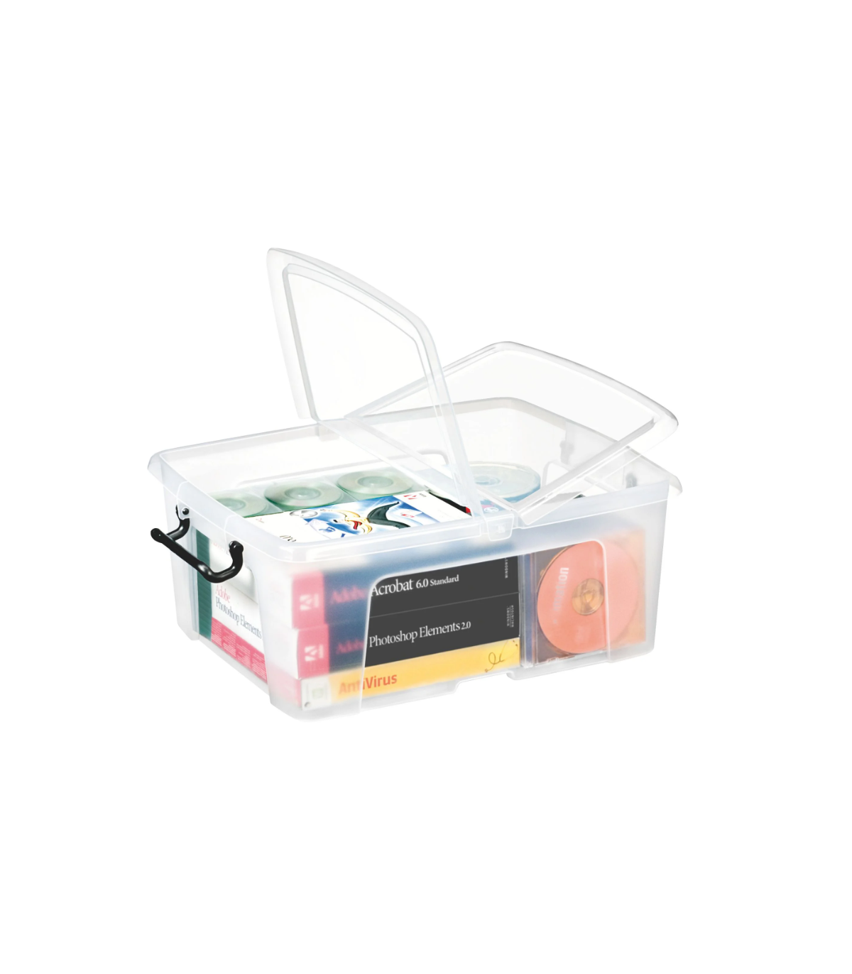 Plastová krabice Strata s odnimatelným víkem - transparentní, Objem krabice 24 l, Vnější rozměry: 39,5 x 20,2 x 50,0 cm (š x v x h), Vyrobeno ve Francii