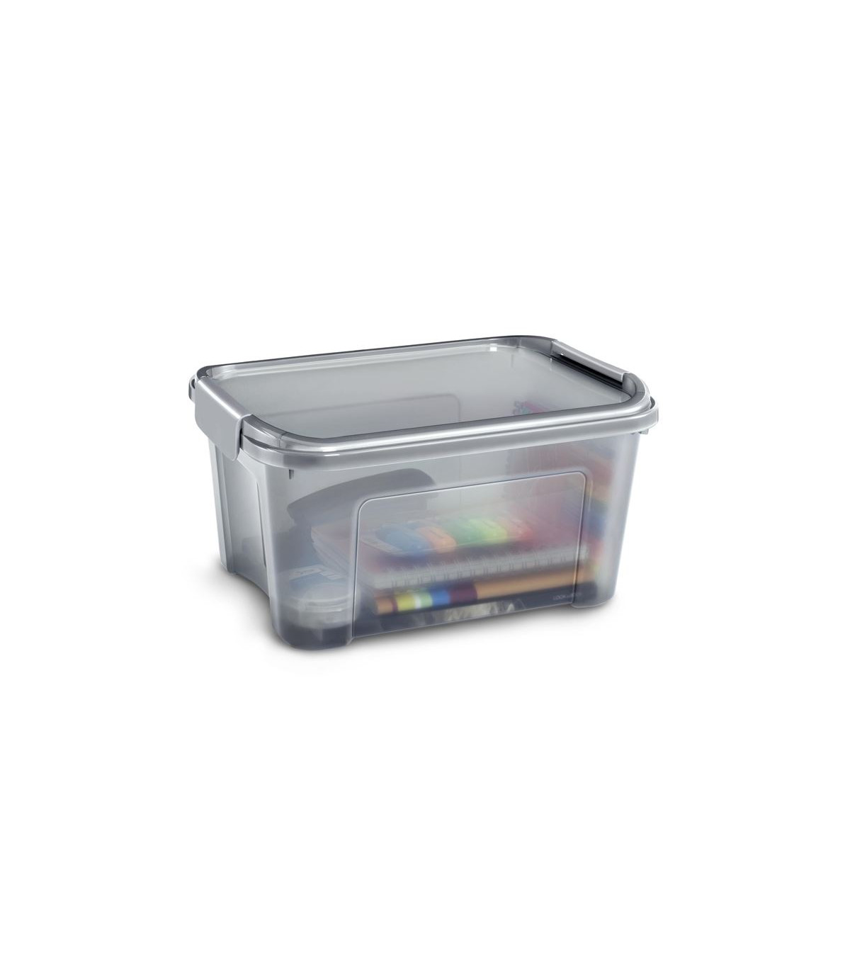 Plastová krabice s víkem Shadow - Materiál plast - recyklovaný, Rozměr 38,9 x 27,7 x 19,5 cm, Barva šedá transparentní, Objem 13 l, Cena za ks