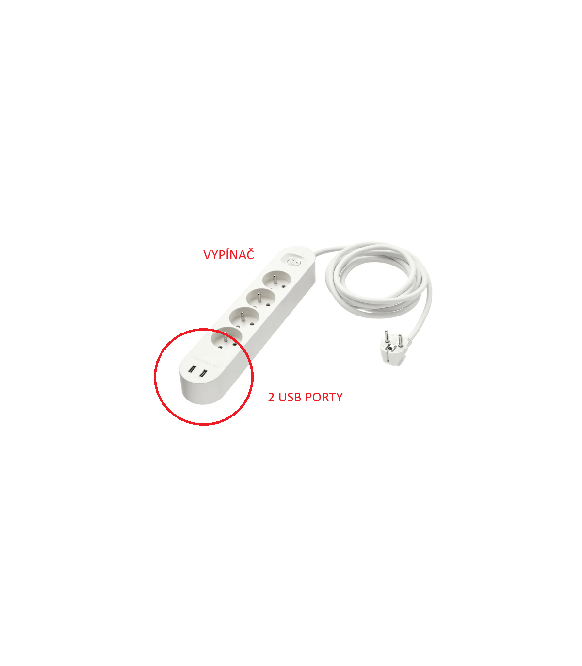- Prodlužovací kabel, 4 zásuvku, 2 USB porty, bílá 3.0 m
