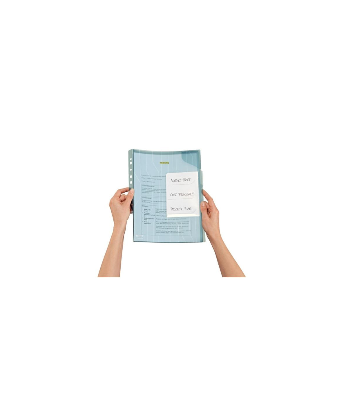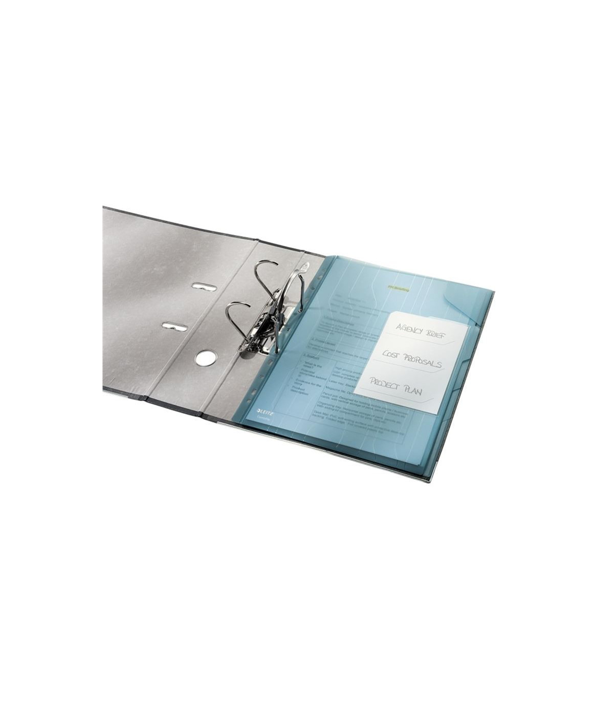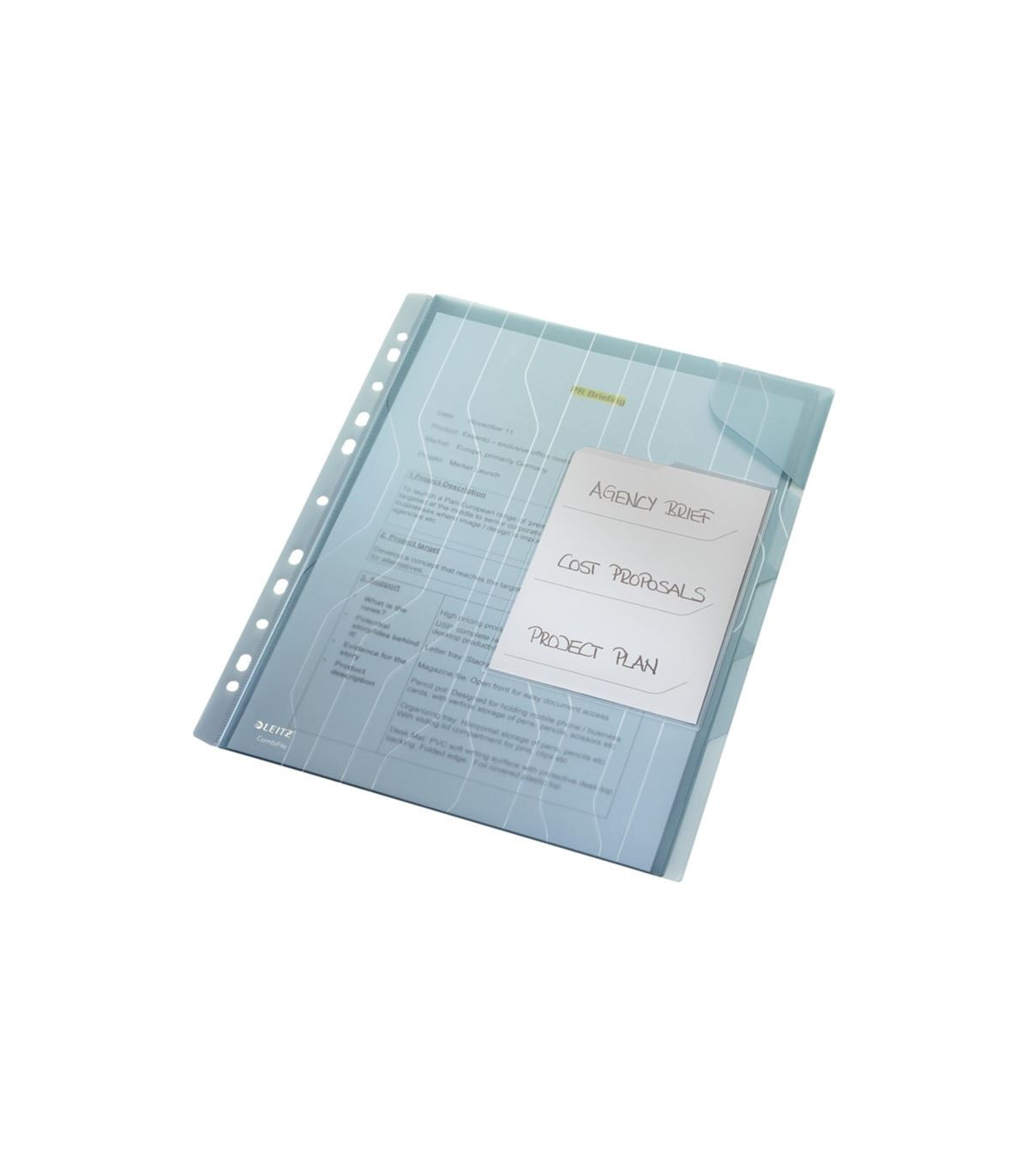 - Kapsa v rohu desek chránící vložené dokumenty; snadný přístup k dokumentům; vhodné na cesty a přenášení dokumentů