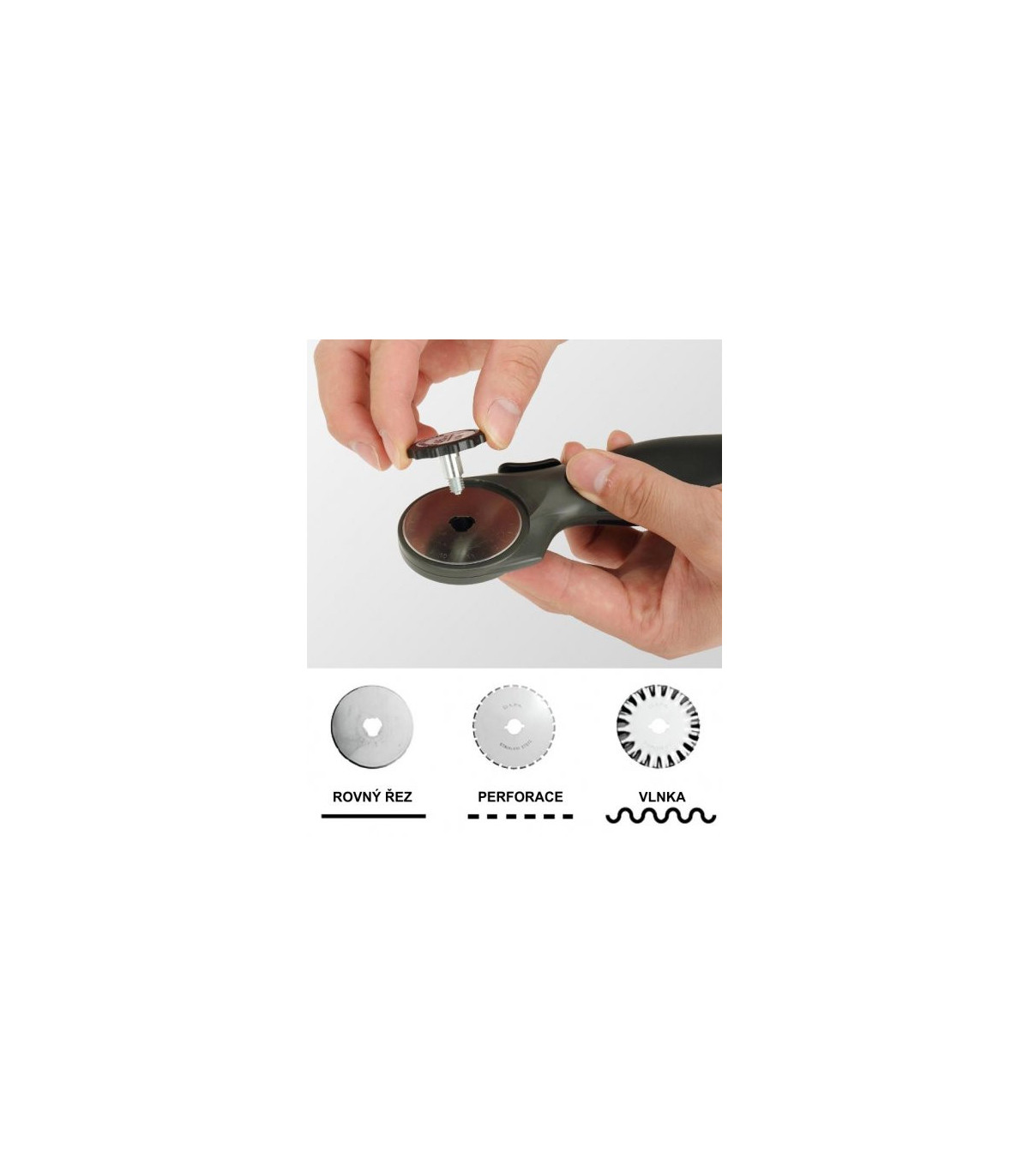 - Ergonomické madlo s výměnným rotačním nožem v ceně nástroje.