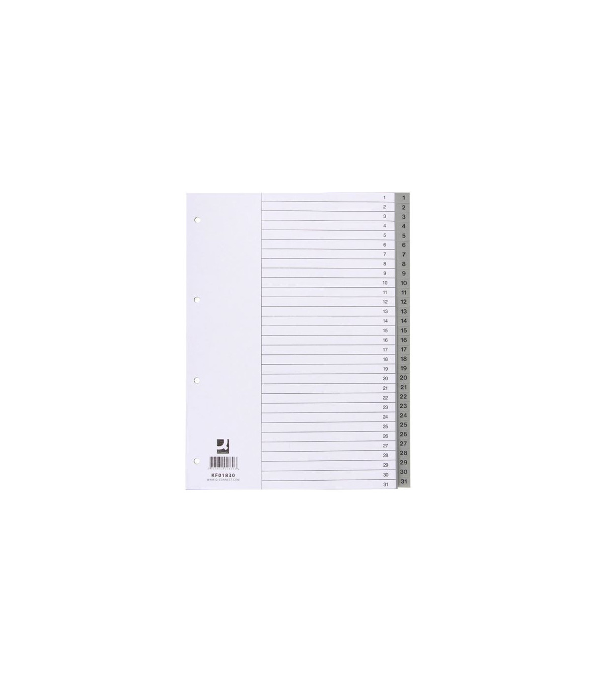 Plastový rejstřík Q-Connect A4 1-31, bílý s šedou