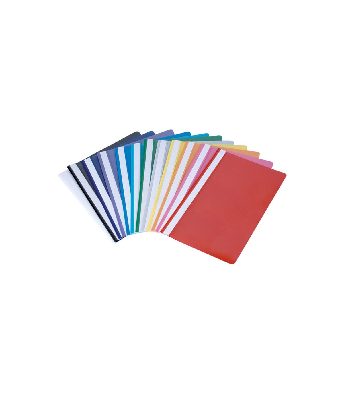 - Klasické plastové rychlovazače; díky zasouvacímu štítku si je velmi snadno označíte; průhledná přední strana (110 μm); barevné zadní desky (180 μm)