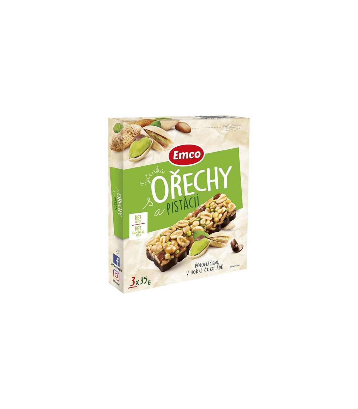 Tyčinka Emco s ořechy a pistácií, 3x 35 g