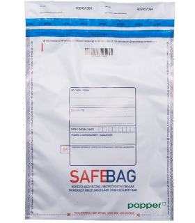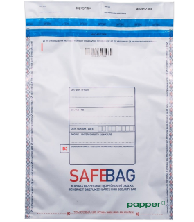 - Speciálně upravená bezpečnostní obálka ve velikosti C3 z černo-bílé koextrudované pětivrstvé fóie o síle 0,05mm, určené k ukládání bankovek a cenných dokumentů