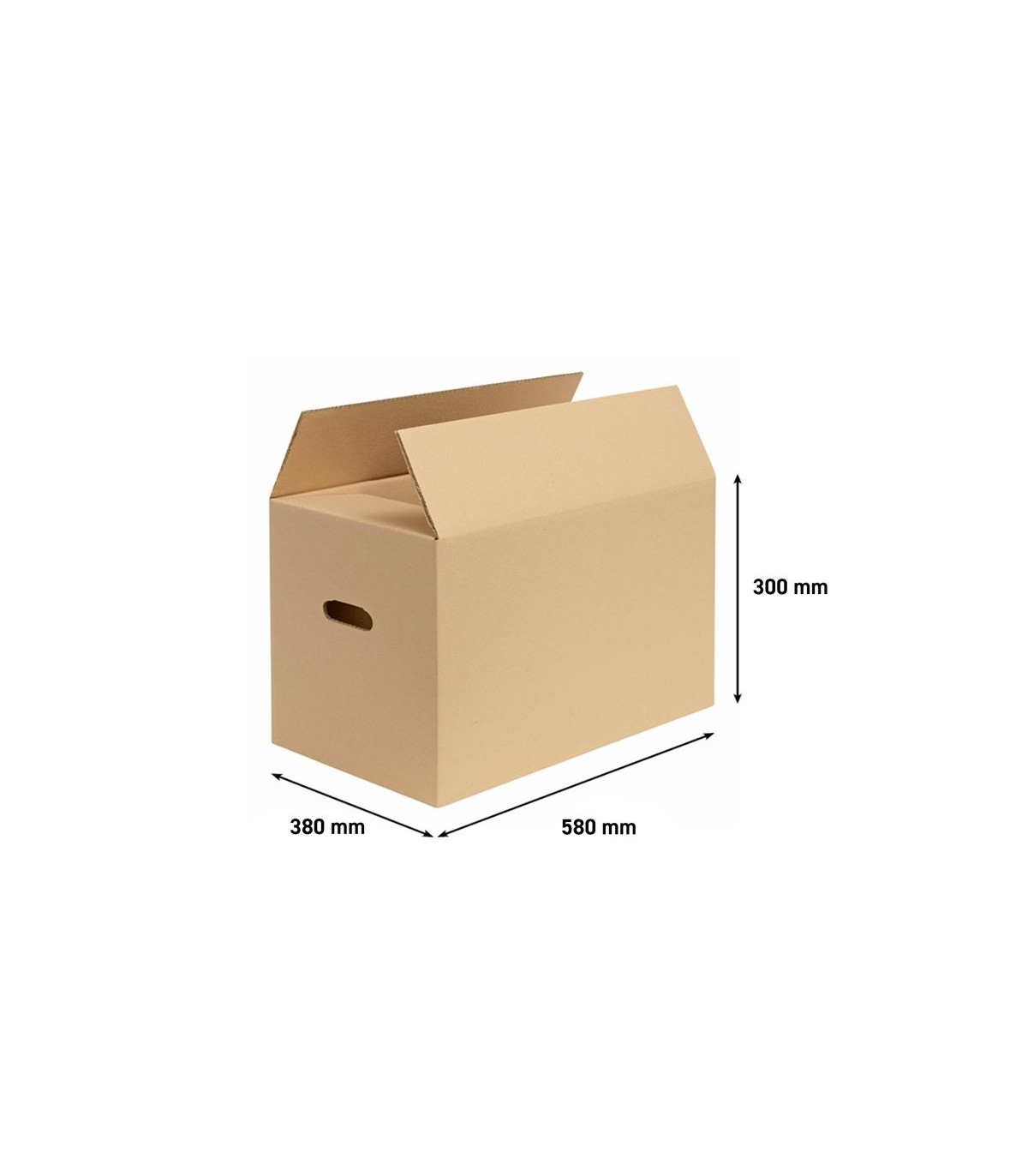 - Klopová krabice stěhovací, s vyseknutými otvory pro ruce - 593 x 393 x 325 mm, 1 ks