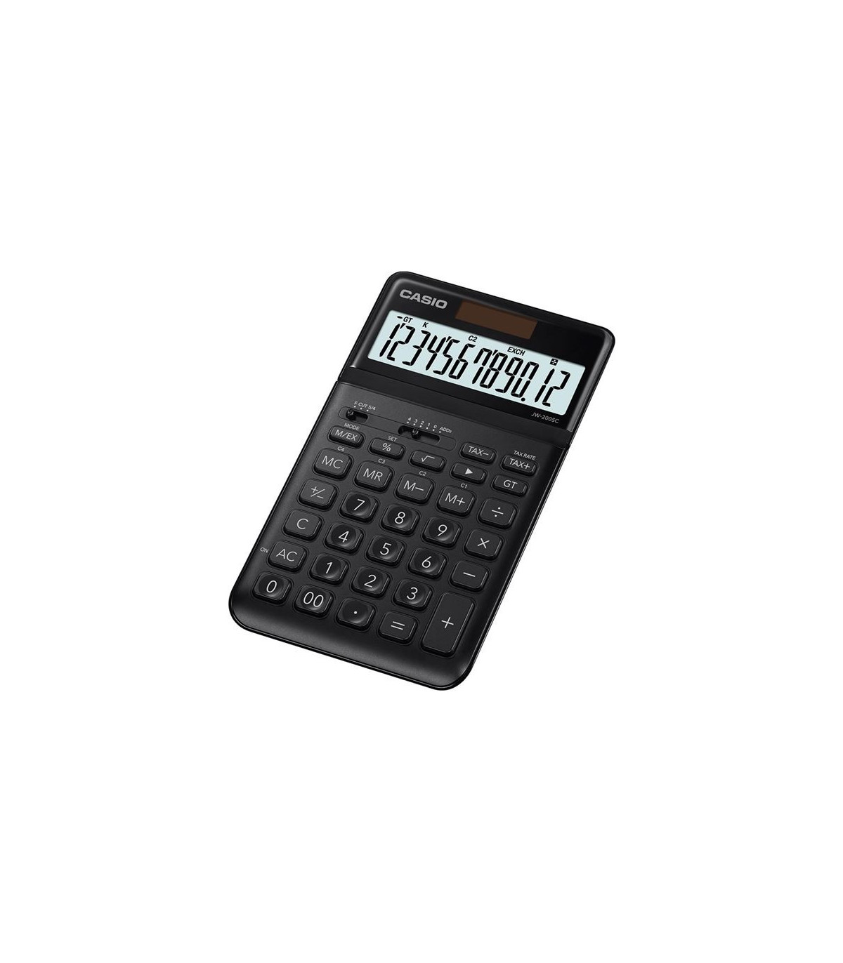 - Designový stolní kalkulátor Velký, přehledný a naklápěcí 12ti místný LCD displej Výpočet procent Výpočet DPH Přepočet měny Výpočet % zisku Celkový součet Výřez Nastavení desetinných míst Tlačítko opravy zadání Tlačítko dvojité nuly Nezávislá paměť Napájení: Duální solár/bateriové Rozměry: 10,9 x 1,1 x 18,4 cm Hmotnost: 150g černá barva