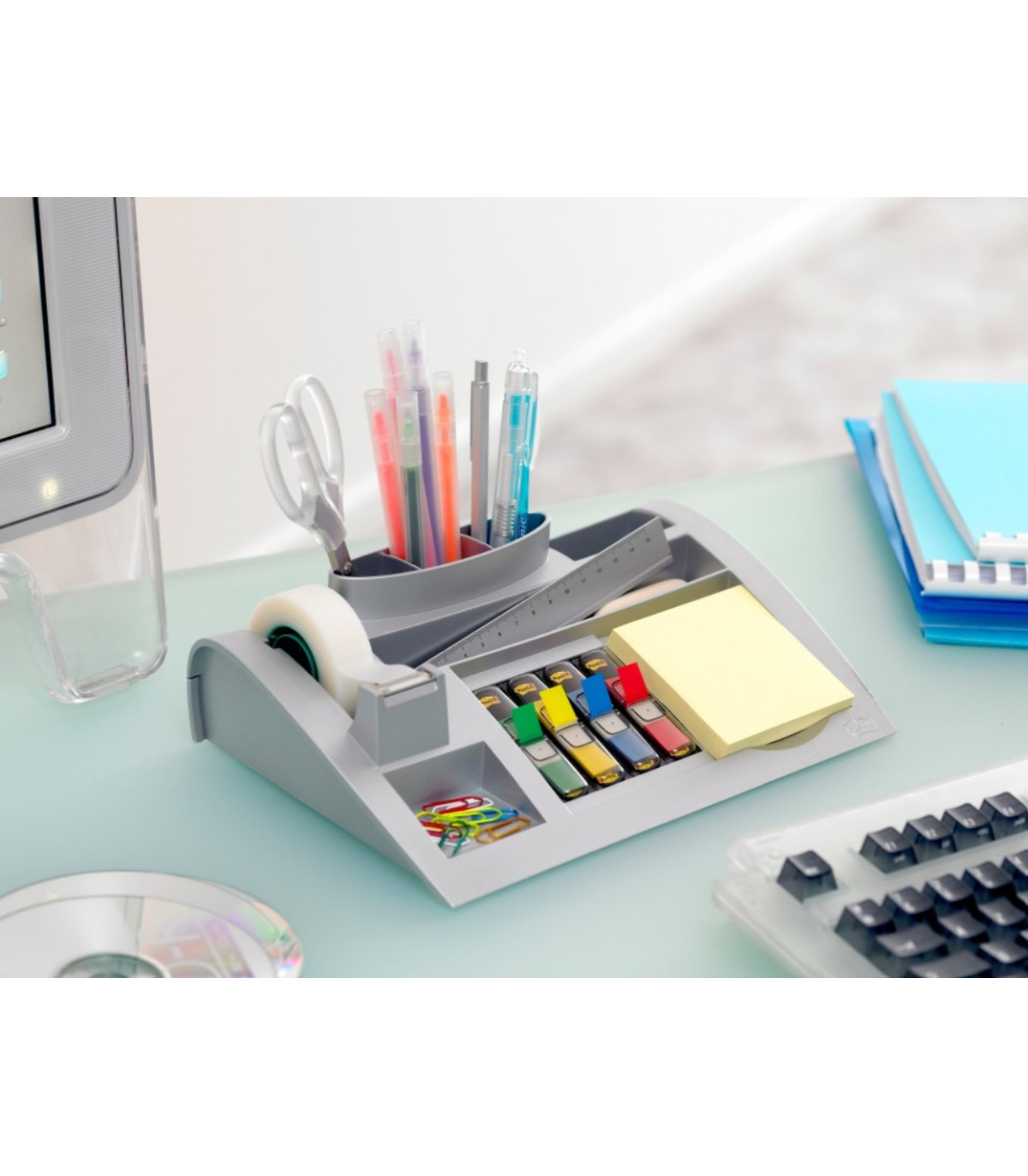 Stolní organizér Post-it v elegantním stříbrném provedení pomáhá omezovat nepořádek a šikovně se vejde do většiny stolních zásuvek nebo může stát na stole, Barva šedá, Cena za ks