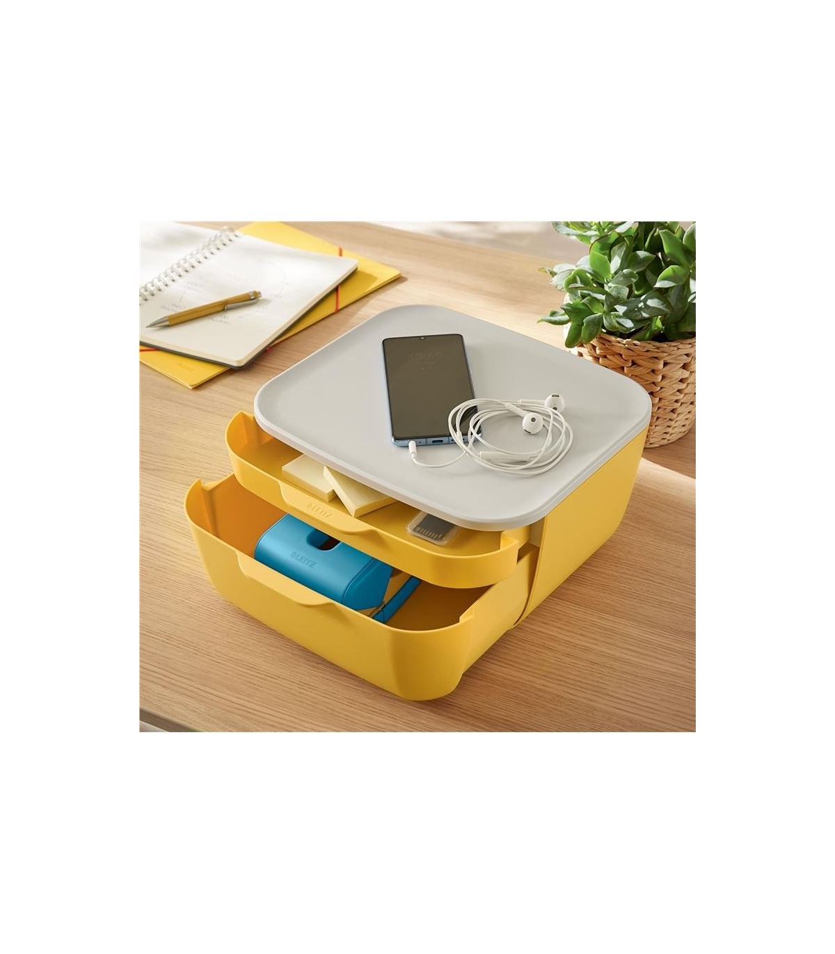 - Zásuvkový box se 2 zásuvkami ve žluté barvě s matným povrchem nabízí úložné místo pro všechny nejen pracovní kancelářské potřeby, je vhodný domů i do kanceláře