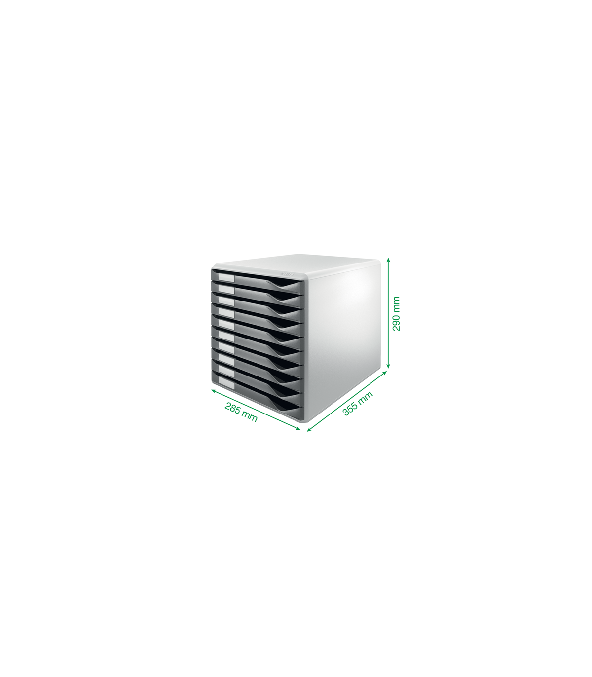 Zásuvkový box Leitz - 10 zásuvek, V barvě černý/šedý, Určený pro formát A4, Rozměry: 28,5 x 29,0 x 35,5 cm (š × v × h)