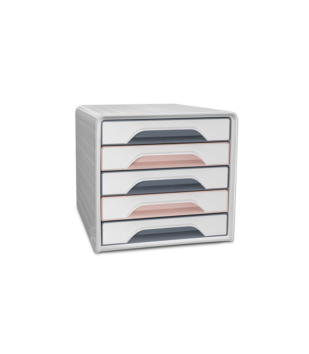 Zásuvkový box Cep Mineral Smoove - 5 zásuvek, růžovo/šedý s potiskem bukového vzoru, Rozměr: 288 x 360 x 270 mm, Pro formát A4+